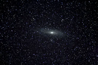 It is a real thrill to look at Andromeda. That little cloud represents 300 billion stars, and they are around 2.5 million light years away. So when you look, you know the photons hitting your retina started their trip LONG before there were homo sapiens. Icing on the cake: A satellite went through the telescope's field of view just as was looking at M31.
