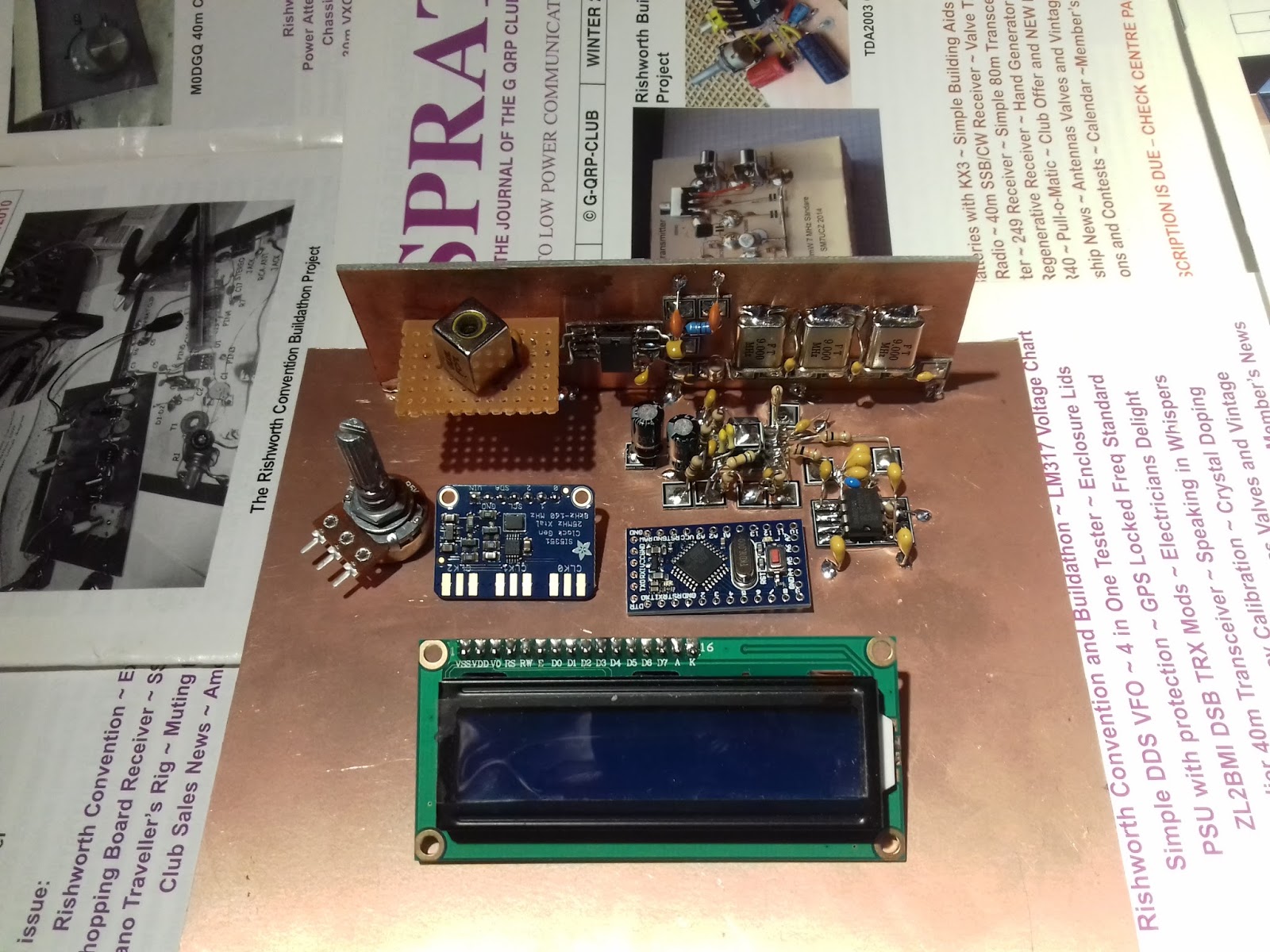 I'm using your LBS code on the Arduino, the one for 20m with 9MHz IF. I haven't applied power to the rig yet but it's not far off fully built. I tweaked the Arduino sketch using my Uno and tonight I have successfully transferred the code to a Pro Mini. (Code went into Pro Mini on first attempt - amazing!).